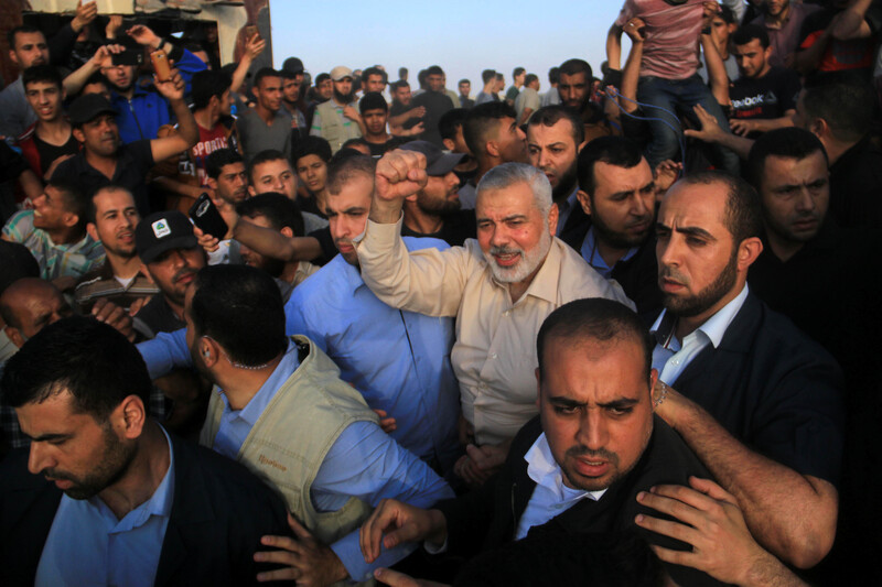 Hamas leader Ismail Haniyeh during a Great March of Return protest along Gaza’s boundary with Israel in May 2018.