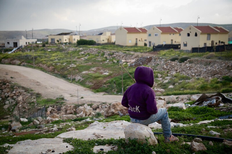 A Palestinian boy in the Bedouin village of Umm al-Khair, in the South Hebron Hills, looks towards Carmel, one of Israel’s settlements in the occupied West Bank, all of which are illegal under international law, Febuary 2016.