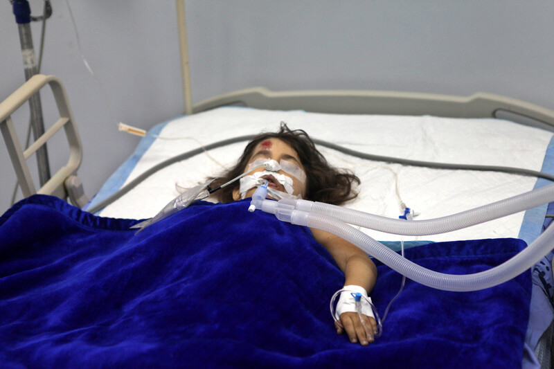 Six-year-old Toleen Asfour lies in a hospital bed on 19 October after she was hit by an Israeli motorist. Five-year-old Inas Khalil was killed in the same incident near the West Bank village of Sinjil.