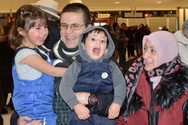 After three years in a French prison on false charges, Hassan Diab is greeted by his wife and children at Ottawa airport on his return home to Canada, 15 January. (Hassan Diab Support Committee)
