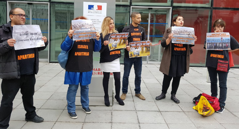 Last week activists from BDS France, a group supporting the boycott, divestment and sanctions campaign, rallied outside the Paris headquarters of the Institut Français “to denounce the scandalous propaganda operation France-Israel 2018, which aims to enhance relations between France and the Israeli apartheid regime.”