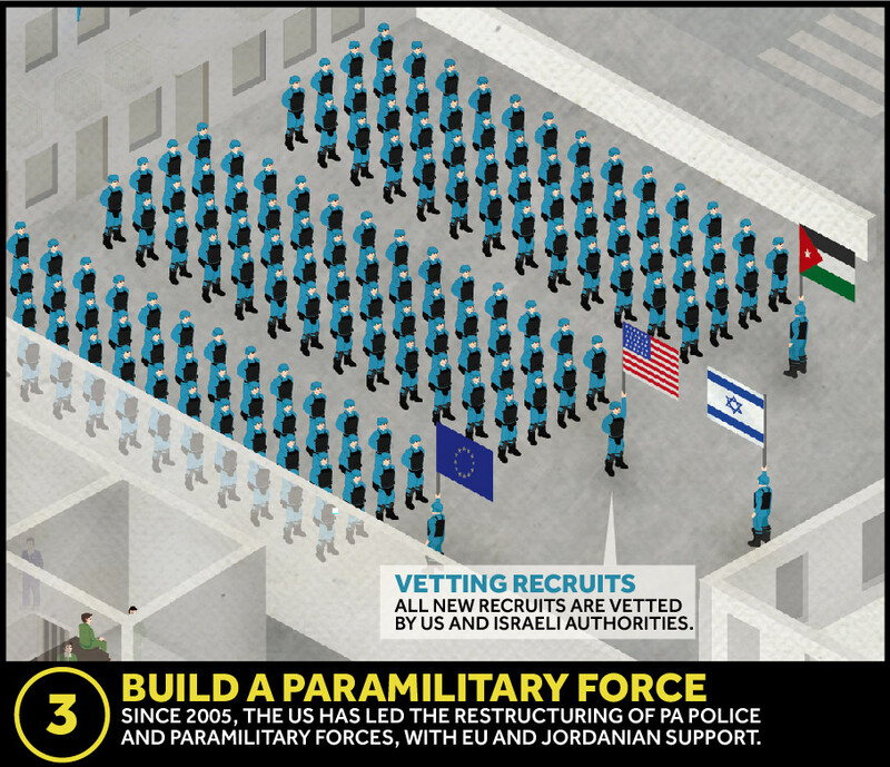 “All new recruits are vetted by Israeli and US officials, and have been widely deployed to crack down on nonviolent Palestinian civil society activities, while doing nothing to protect Palestinians from attacks by Israeli settlers or soldiers,” it adds.