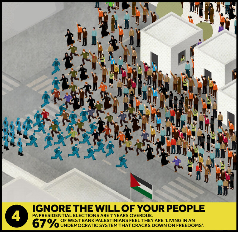 Visualizing Palestine calls them “The Palestinian Authority guide to keeping yourself occupied.”