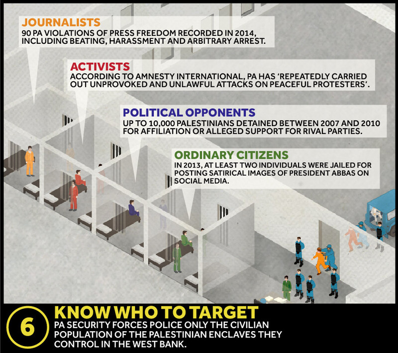 This and other facts about the PA’s support for the Israeli occupation are laid out in these infographics created by Visualizing Palestine.