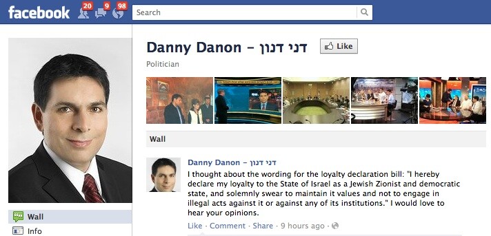 Danny Danon, a member of the Israeli parliament, the Knesset, is proposing that all Israeli citizens – especially the 1.4 million Palestinian citizens of Israel – should be forced to declare an oath of loyalty to the political ideology of Zionism as a condition for obtaining an ID card.
