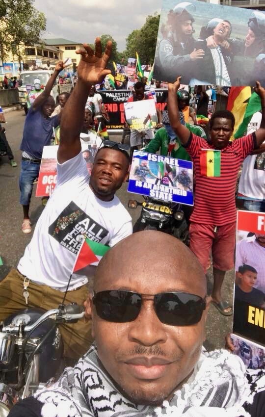 Member of parliament Ras Mubarak at a demonstration in Ghana’s capital Accra, to protest US recognition of Jerusalem as Israel’s capital, December 2017. (via Facebook)