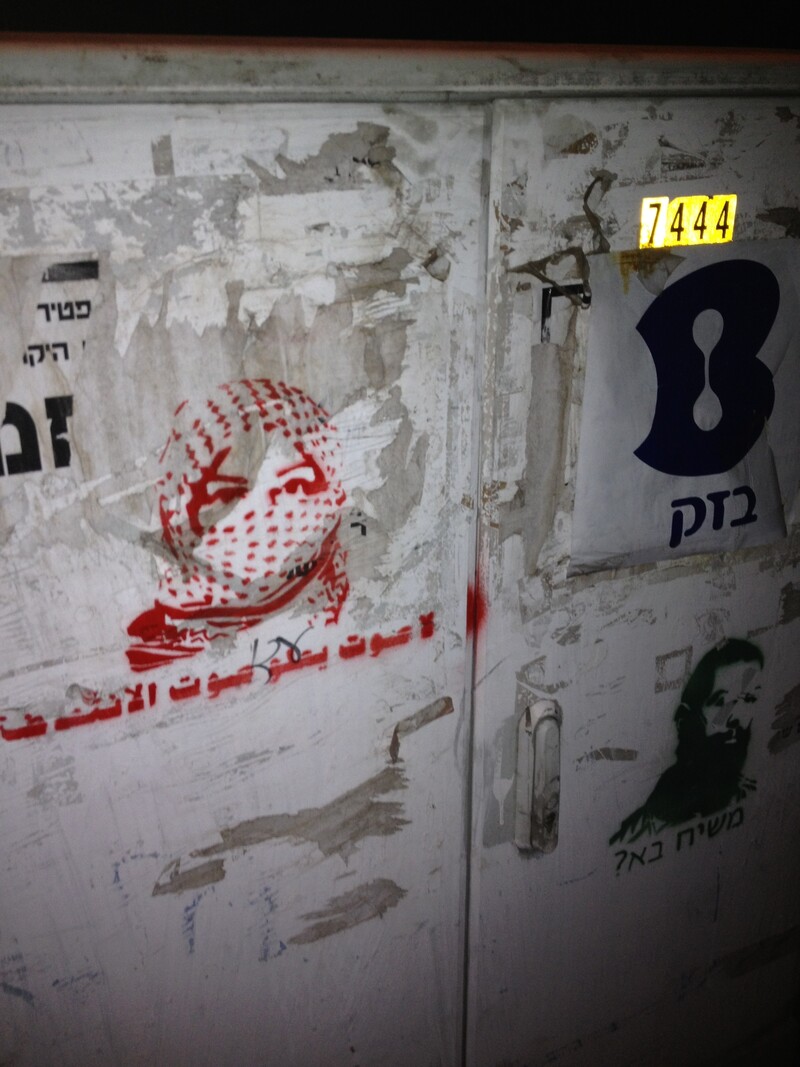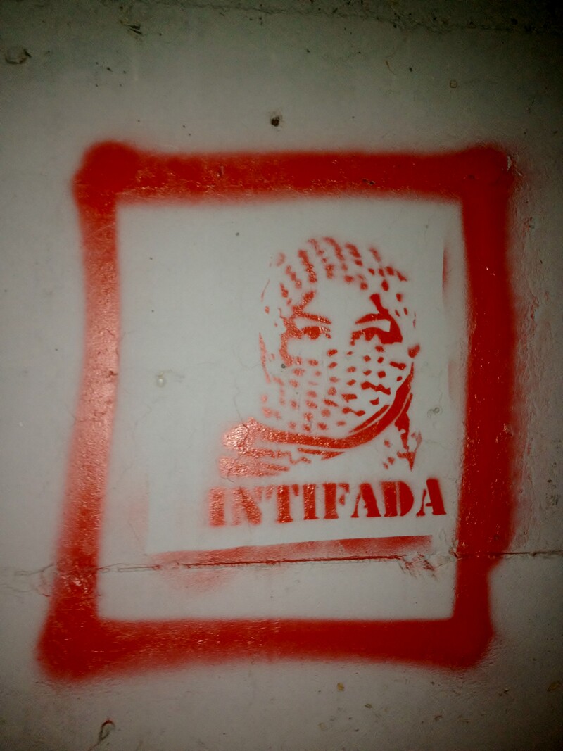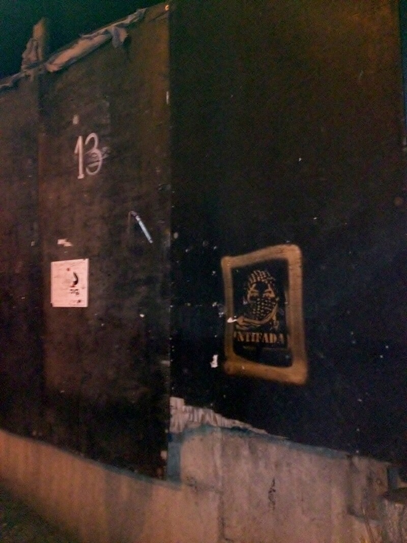 Tonight, Palestinian street artists struck again – as they had promised to do – this time in southern Jerusalem, or more specifically “in Talpiot, an Israeli commercial area, built on Palestinian land of Baqaa and Beit Safafa.”