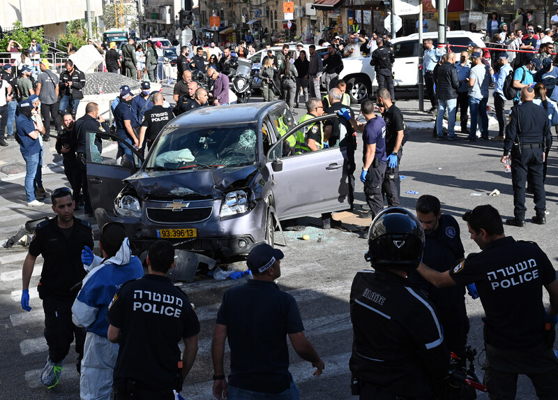 Hours later, a car Israeli authorities say was driven by a Palestinian slammed into pedestrians at an intersection in West Jerusalem injuring five people, one of them – a man in his 60s – seriously.