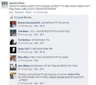 By the time I went to the Walla Facebook page and took a screen capture, there were over 150 comments and many, but not all, of the most racist ones had already been deleted. There were also many Israeli Jews and Palestinian citizens of Israel expressing deep revulsion at the extent of the racism that was expressed.