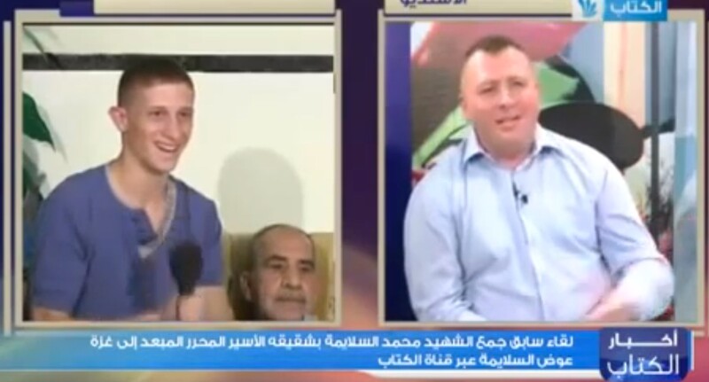 Muhammad al-Salaymeh, left, during an October 2011 TV interview with his brother Awad, an ex-prisoner banished to Gaza.