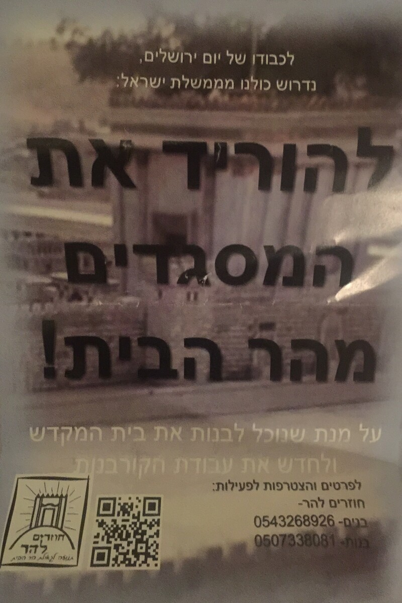 It is signed by an organization called “Returning to the [Temple] Mount.”