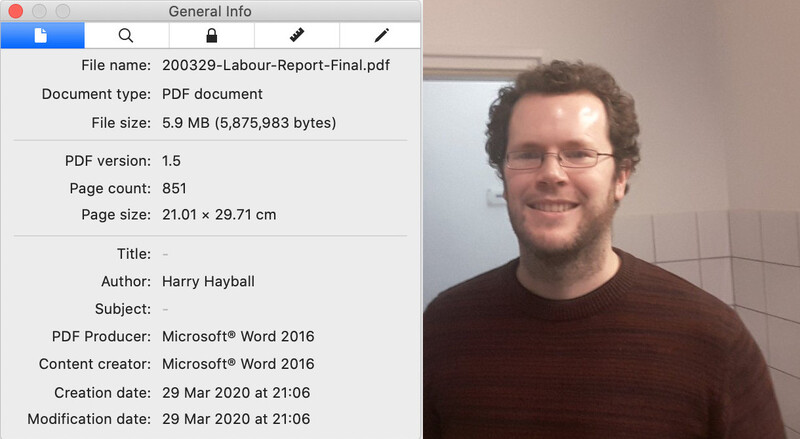 The leaked document’s metadata suggests the report’s lead author was Harry Hayball, a current Labour Party staffer.