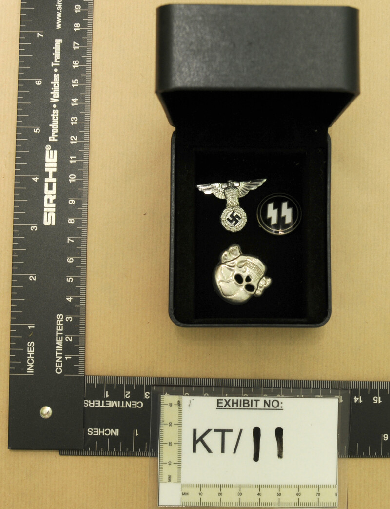 There was also a host of books relating to Hitler’s Nazis and the Holocaust, as well as white nationalist books and magazines. Mair’s bookcase was topped off with a Nazi swastika eagle statue, a photo released by police shows.