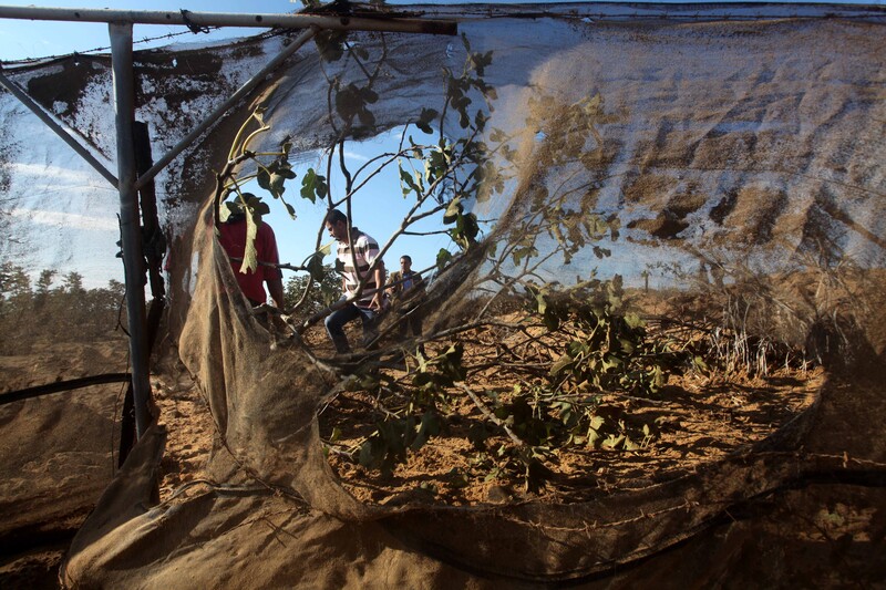 Farmers in Gaza inspect damage to their land; a British MP has urged supporters to stand by Israel when it bombs Palestinians.