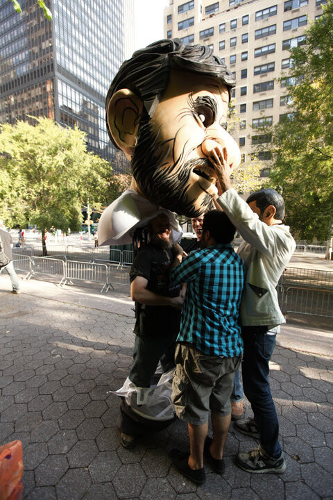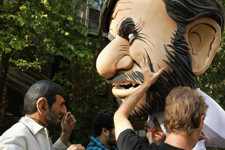In the apology, they suggest that the San Francisco Pride parade performance was an accident on the part of “street theater performers retained by [Iran180].” However, it can be shown that a person responsible for hiring the performers is both a “member” of Iran180 and also the president of the public relations firm that created it. Moreover, the retained performer who wears the giant grotesque head that supposedly resembles Ahmadinejad appears in other videos and photos made in New York City after and possibly before the 2011 San Francisco pride parade.
