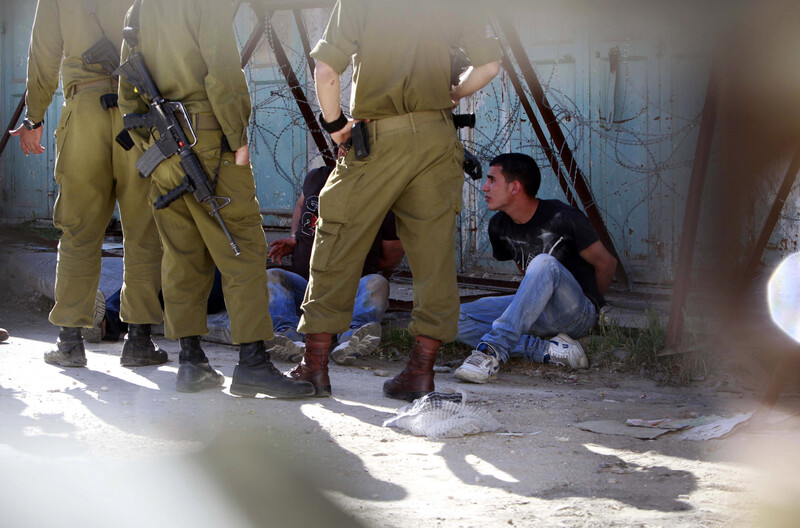 Israeli soldiers detain Palestinian youths in the occupied West Bank city of Hebron in March 2014.