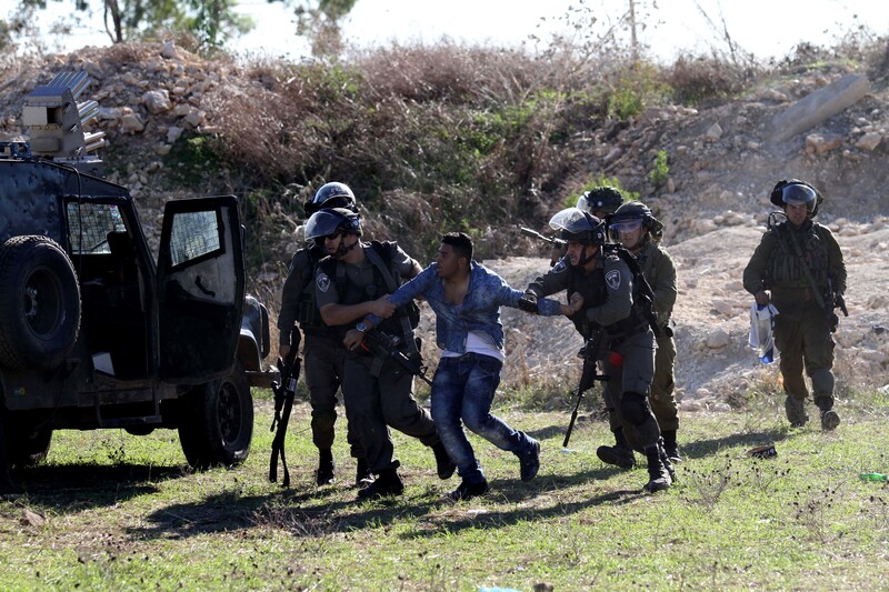 Israeli forces detain a Palestinian protester in Tulkarem last month.