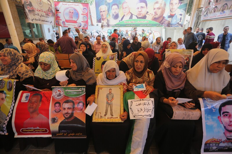 Palestinians take part in a protest demanding the release of prisoners in Israeli jails, in front of the Red Cross office in Gaza City, on 9 May.