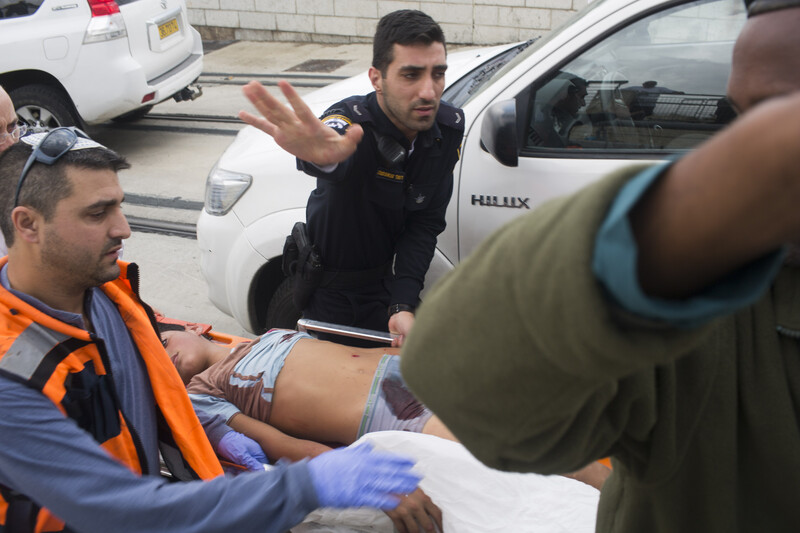 Israeli paramedics and forces evacuate 12-year-old Ali Alqam who was shot after allegedly stabbing a security guard at a tramway station in the Pisgat Zeev settlement in occupied East Jerusalem on 10 November. His 14-year-old cousin Muawiya Alqam was arrested during the incident.