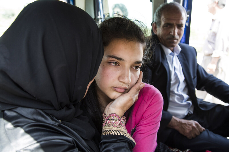 Dima al Wawi, 12, the youngest Palestinian female detainee, is welcomed by her family at the Jbara checkpoint in the occupied West Bank, after her release on 24 April.