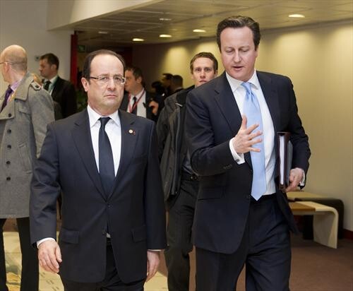 François Hollande (left) with David Cameron: 100 years after carving up the Middle East between them, France and Britain are still supporting the colonization of Palestine.