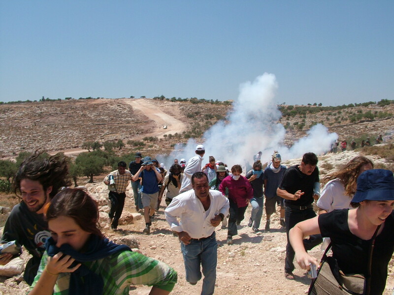 Circumstantial evidence indicates that Bilin is being used as a laboratory to test new “crowd control” weapons in Israel’s arsenal. For the past few years, the village has been regularly sprayed by skunk water. Nobody is quite sure what this foul-smelling weapon contains; although samples have been brought to Birzeit University in the West Bank, scientists say that they would need to analyse it within an hour of its use to identify the chemicals involved. What is certain, though, is that it causes a severe itch when it comes in contact with human skin.