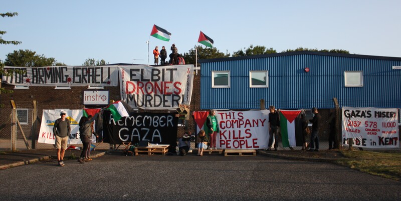 Also in the UK, production has been halted at Elbit’s Elite KL factory in Tamworth, Staffordshire. A third Elbit-owned factory called Instro Precision in Broadstairs, Kent, has also been shut down. Activists are protesting on the roof of both factories.