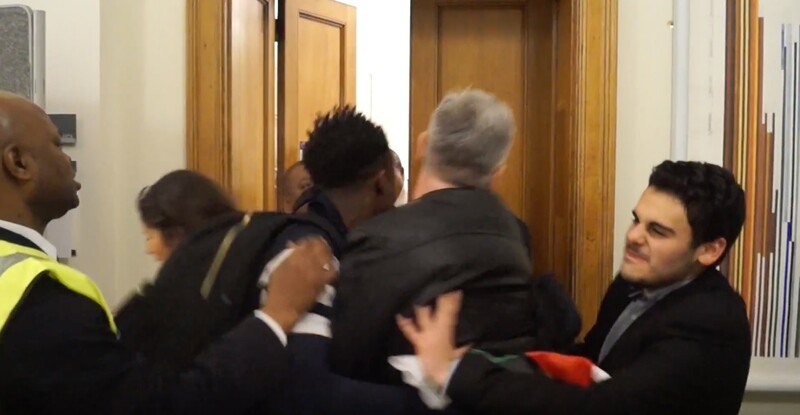 Video has emerged showing supporters of Israel being violent, aggressive and abusive during student protests against a speech by a former Israeli army officer at University College London (UCL) on Thursday evening.