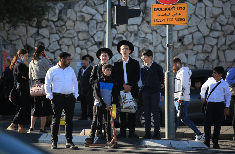 Israelis gather at the scene of an explosion at a bus stop in Jerusalem on 23 November.