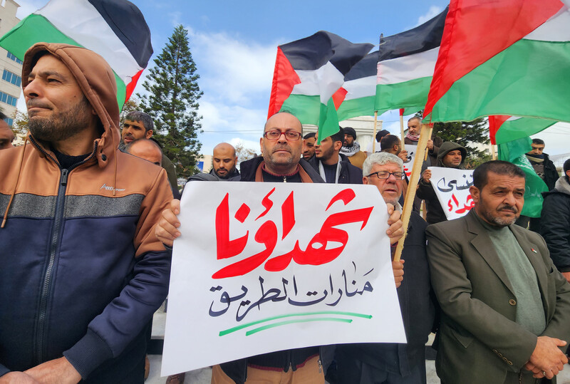 Hamas supporters in Gaza City rally in favor of resistance against the occupation following a deadly raid in Jericho, 6 February.