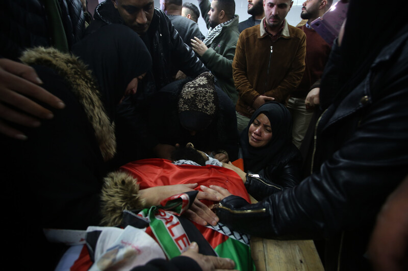Palestinians mourn one of two young men killed by Israeli forces in Nablus overnight Tuesday, 20 March.