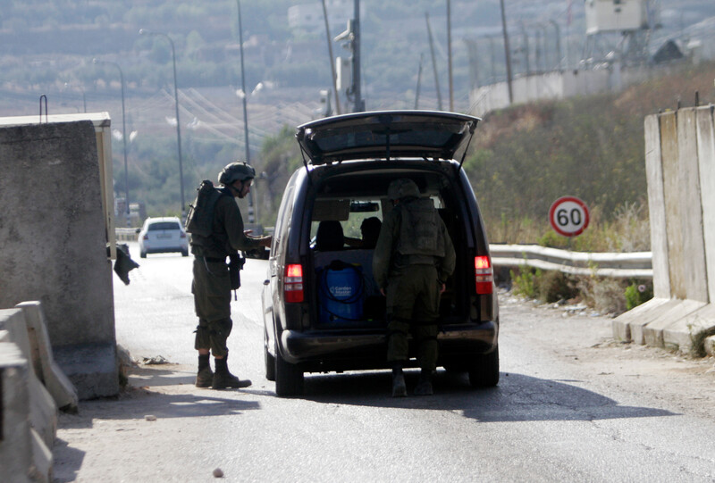 Israeli soldiers search vehicles at a checkpoint near Kedumim settlement in the northern West Bank, 6 July.