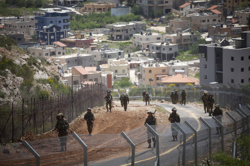 Israeli occupation forces on patrol outside Majdal Shams, a Syrian town in the Golan Heights, in May 2011.