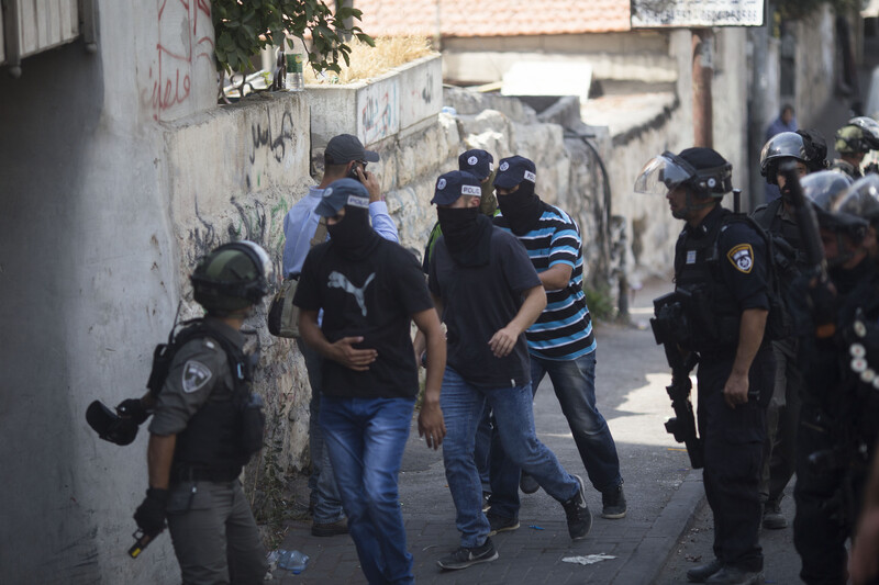 Undercover Israeli forces disguised as Palestinians are seen during a protest in the Wadi al-Joz neighborhood of East Jerusalem on 21 July.