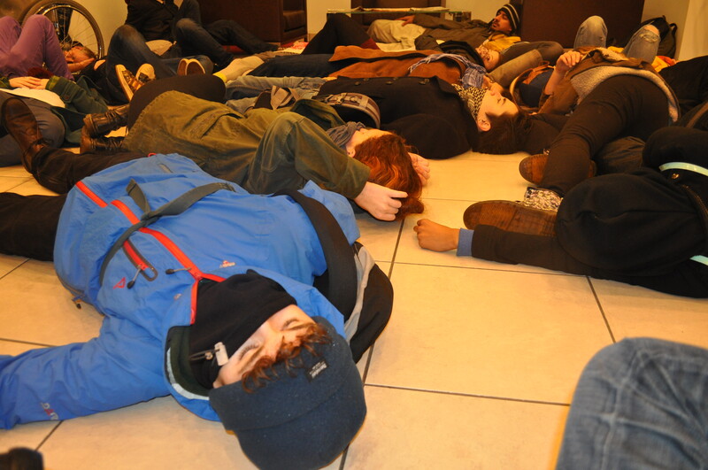 The protesters entered the building in Victoria at 4pm and staged a sit in protest and 4 people locked themselves together. Police removed the protesters after an hour.