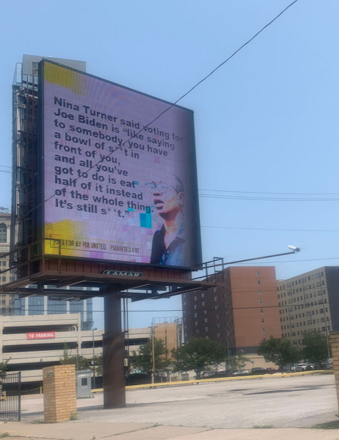 A billboard paid for by Pro-Israel America United takes aim at Nina Turner.