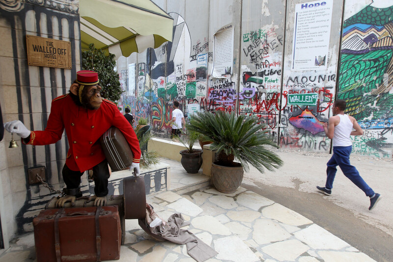According to Goldman, the windows of that “nine-room guesthouse” in Bethlehem “overlook the barrier that separates the territory [the West Bank] from Israel.”