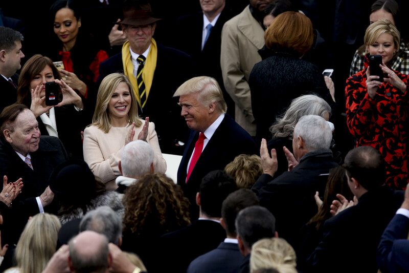 Seated immediately behind Trump during his inauguration speech was Miriam Adelson. She and her husband, Sheldon, also present on the dais, are billionaire funders of the Republican Party.