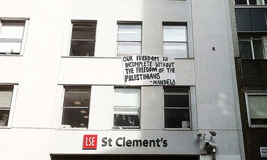 The Palestine Society at London School of Economics inaugurated Israeli Apartheid Week with an incredibly massive and successful stunt held at the LSE campus on Houghton Street, outside St. Clements House, which displayed a huge banner bearing a quotation by Nelson Mandela: “Our Freedom is incomplete without the freedom of the Palestinians.” Read more about LSE Palestine Society stages an Israeli mock checkpoint on campus, gets attacked with water bombs