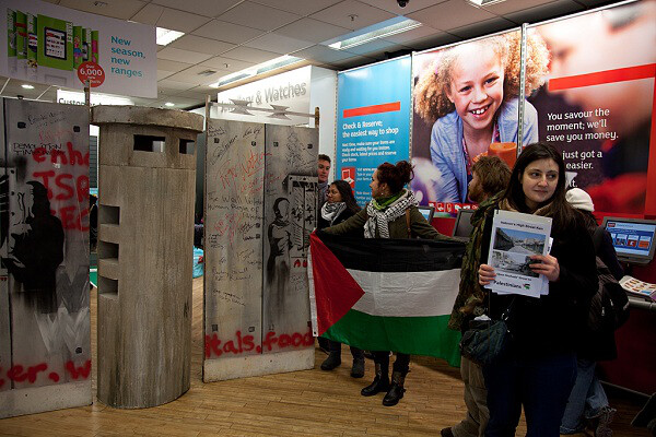 … Amongst the shops that were targeted was Whole Foods, a brand that boasts of its ethical sourcing, but recently started selling SodaStream products, which are made in one of the fastest growing illegal Israeli settlements in the West Bank, Ma’ale Adumim. Activists asked Whole Foods to remove SodaStream from their shop and encouraged shoppers to express their concern about the store’s ethical standards. Tesco and Argos were also targeted for selling Israeli produce which finances the illegal occupation of Palestine.