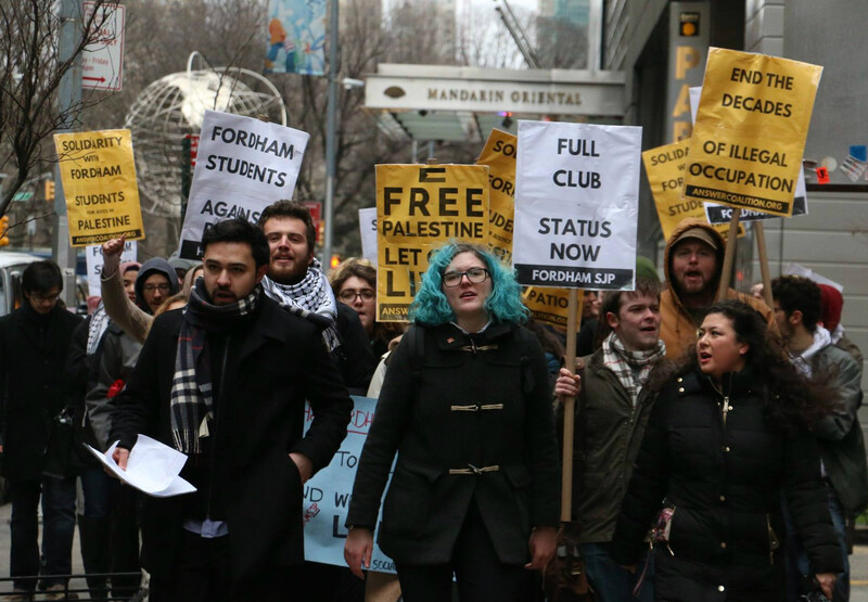 More than 100 students and local activists demonstrated on 23 January to demand that Fordham lift the ban and allow SJP to establish a chapter on campus.