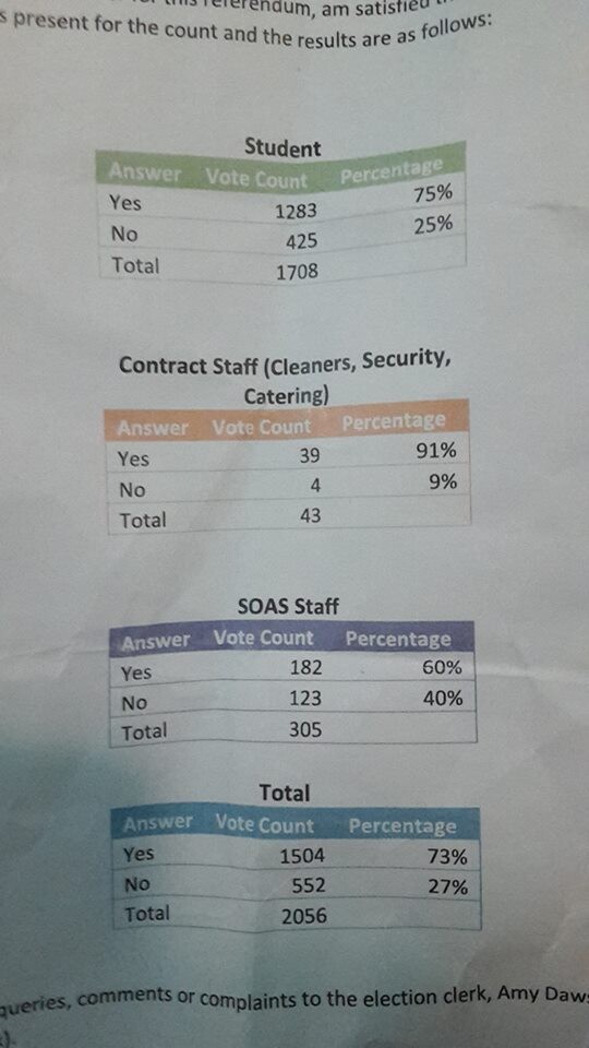 The voting took place between 23 and 27 February. The referendum was school-wide, that is, it was open to all members of the SOAS community. This included current students, academics, non-academic staff, university governors and outsourced workers such as cleaners, security and catering staff. SOAS represents one of the most diverse student bodies in the UK with roughly 6,000 students and staff of multi-faith backgrounds from over 133 countries. The referendum was called for by the Students’ Union, and was conducted in an open, fair and transparent environment. Both the Yes and No campaigners were given equal platforms to hold panel discussions and debates.