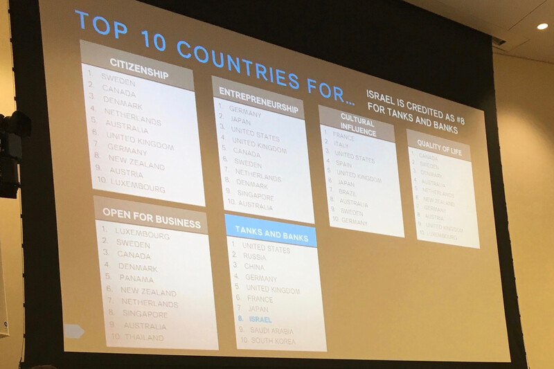 Israel needs an image makeover, argued Sable, noting that Israel was not ranked in the top 10 countries for entrepreneurship, cultural influence, business friendliness or quality of life.