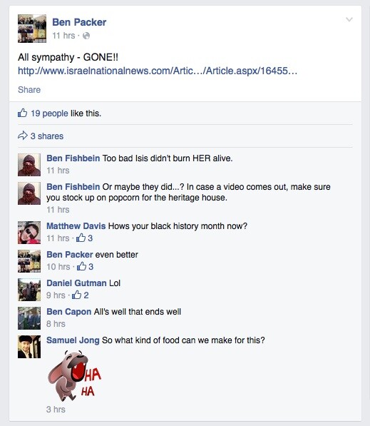 I am ashamed of the Jewish people who commented in such a horrible way. They are my people, but I am ashamed of them. What can I do to change them? What have I failed to do? I apologize to Kayla's family and her friends, as well as all those whose lives she touched, for the shameful comments. May her memory be a blessing for you.