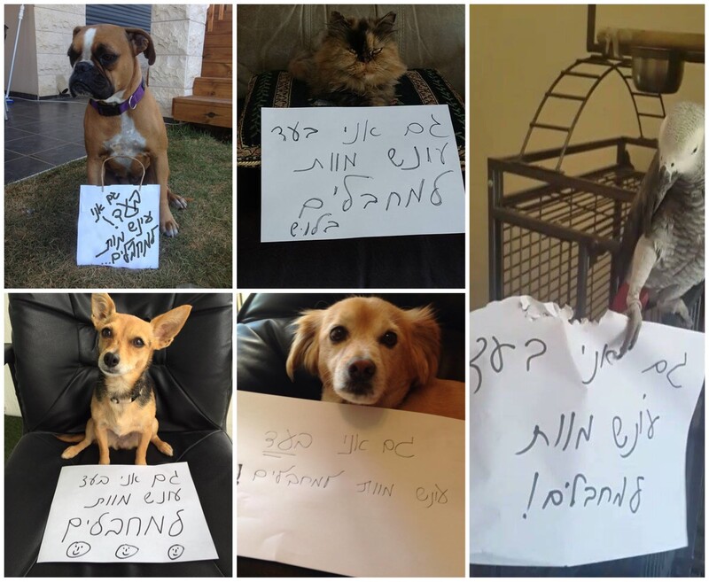 Israelis similarly staged photos of their pets holding pro-death penalty signs: