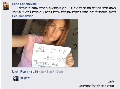 Appalled by Gal’s Facebook campaign, Gurvitz replied with a photo of himself holding a sign that reads: