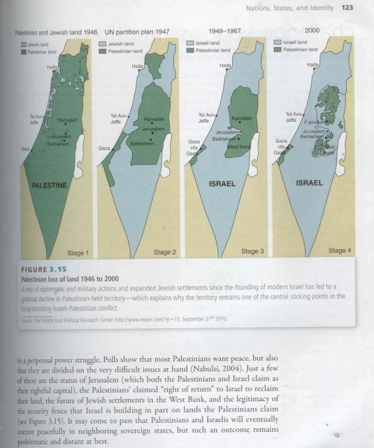 An image published by Elder of Ziyon from the textbook Global Politics, as part of the anti-Palestinian blogger’s successful campaign to pressure McGraw Hill over maps depicting land loss in Palestine.