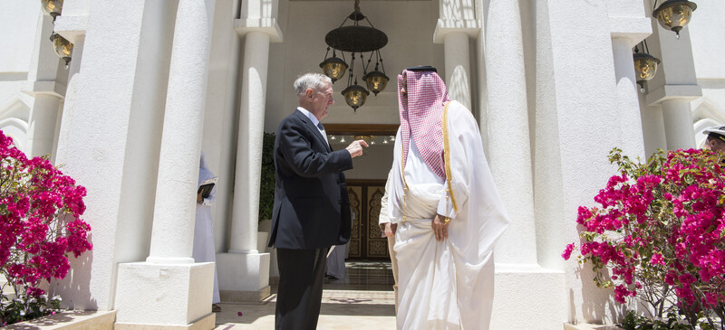 US Defense Secretary James Mattis meets with the emir of Qatar Tamim bin Hamad Al Thani at the Sea Palace in Doha, Qatar, 22 April 2017. (Brigitte N. Brantley)