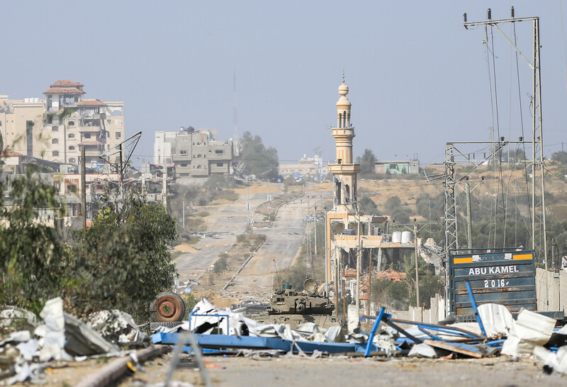 An Israeli tank in Gaza City’s Zeitoun district, 26 November 2023.