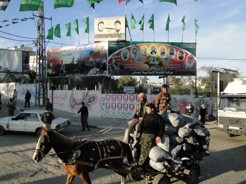 Inside the Gaza Strip, brand Hamas is everywhere. The green flag of the Islamic Resistance Movement adorns all the main streets and avenues, along with posters of Sheikh Ahmed Yassin and Abdel Aziz Rantissi. On every corner in the city center is a bearded policeman or soldier with an AK-47 in hand.